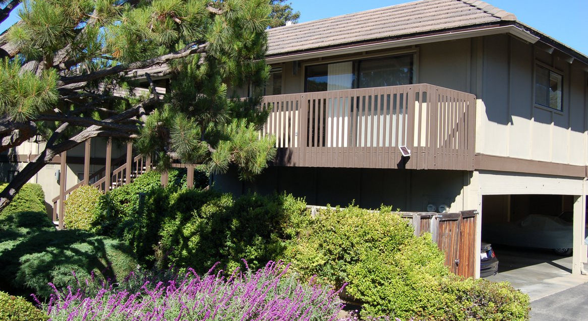 Rarely available 2 bed/2 bath condominium in quiet complex. Set back from the street on the second floor, this end unit has a large west-facing balcony. Located in desirable and sunny Carmel Mid Valley with the best weather that the Monterey Peninsula has to offer. Carport and storage room are directly below. Well-maintained and functional floor plan with lots of closet space and a gas-log fireplace in the living room; freshly painted and new carpeting installed recently. Laundromat, stores, restaurants and public transportation are conveniently located across the street of the complex. Swimming pool in the complex. Pet restrictions: no dogs per HOA.